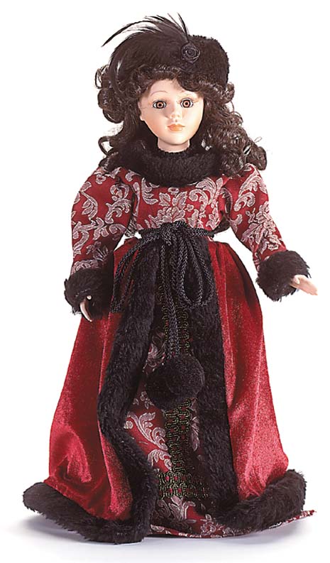 Item No. ASC137 Regal from head to toe is "Anastasia" with her crimson dress edged in fur-like trim. Porcelain. 16" tall. $44.95