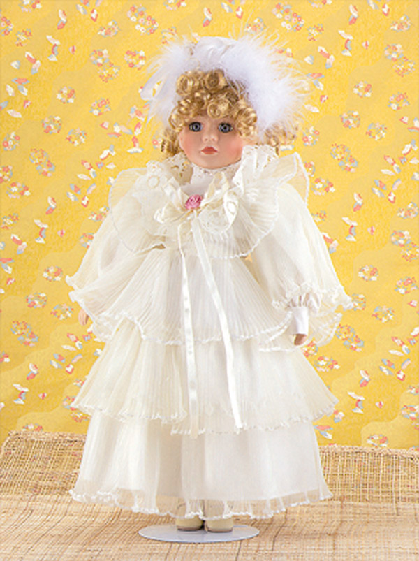 Item No. ASC158 "Blythe." A fetching blonde with captivating gray eyes in a lace ruffle dress. 16" tall. $44.95